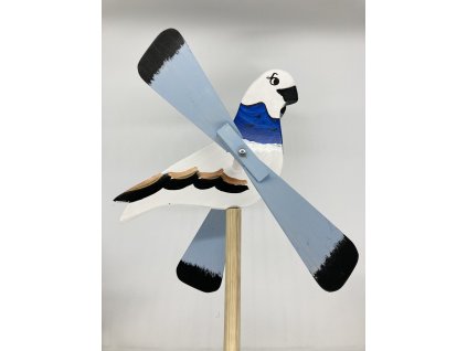 Celodrevená ručne maľovaná dekorácia na Vašu záhradu, terasu či balkón. Už mierny vánok jej roztočí krídla. Súčasťou dekorácie je drevená palica s dĺžkou cca 1. 2 metra, na ktorú sa dekorácia napichuje.