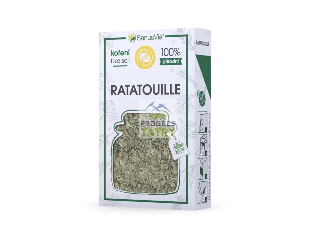 Tradične francúzsky zeleninový pokrm plný paradajok, paprík, baklažánu, cukiet a cibule potrebuje koreniacu zmes obsahujúcu bylinky stredomorskej kuchyne. Petržlen, tymian a bobkový list prepožičia pokrmu sviežu a korenistú chuť, cesnak a čierne korenie dodá jemnú ostrosť a charakteristickú vôňu. Zmes ratatouille využijete aj pri príprave jemnej verzie Čechom veľmi dobre známeho leča.
