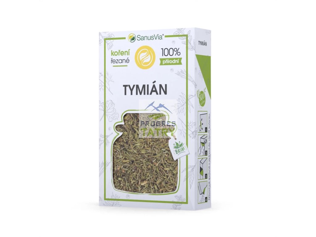 Tymián je korenie zo sušených listov, vetvičiek a kvetov. Jeho ostrejšiu sladkastá chuť a intenzívna vôňa využívajú kuchári z celého Stredomoria. Tymián vynikne predovšetkým pri príprave más, omáčok, plniek, syrov, šalátov, bylinkových masiel, dresingov a zveriny. Taliani ho spoločne s bazalkou a oreganom používajú na dochutenie svojich špecialít - cestovín a pízz. Vyskúšajte ho v kombinácii s rybou. Jeho chuť výborne vyniká v kombinácií s cesnakom, citrónom, saturejkou alebo bazalkou.